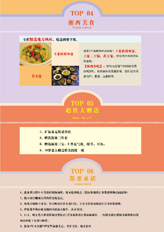 2、全程含 3 早 6 正餐,其中包含三個特色餐飲!餐標(biāo)升級為50元/人,酒店房費(fèi)包含早餐!【本社采取簽單式,杜絕克扣餐標(biāo)】 ,贈送:土家娃娃魚宴、土家三下鍋、苗王宴,給您兩大民族的味覺震撼。。